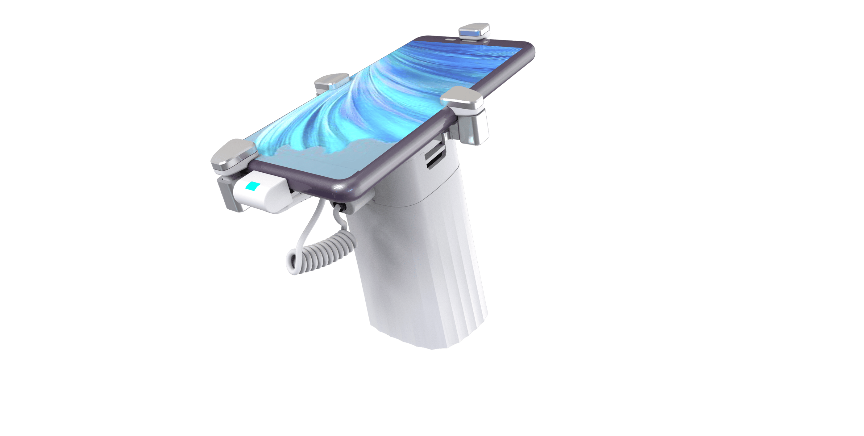 2. Cable Recoiled Interno Seguro con 32" de Extensión: Ofrece a tus clientes la libertad de interactuar plenamente con cada teléfono. El cable retráctil se extiende hasta 32 pulgadas y se guarda limpiamente, permitiendo una experiencia de prueba fluida y segura, esencial para la decisión de compra.